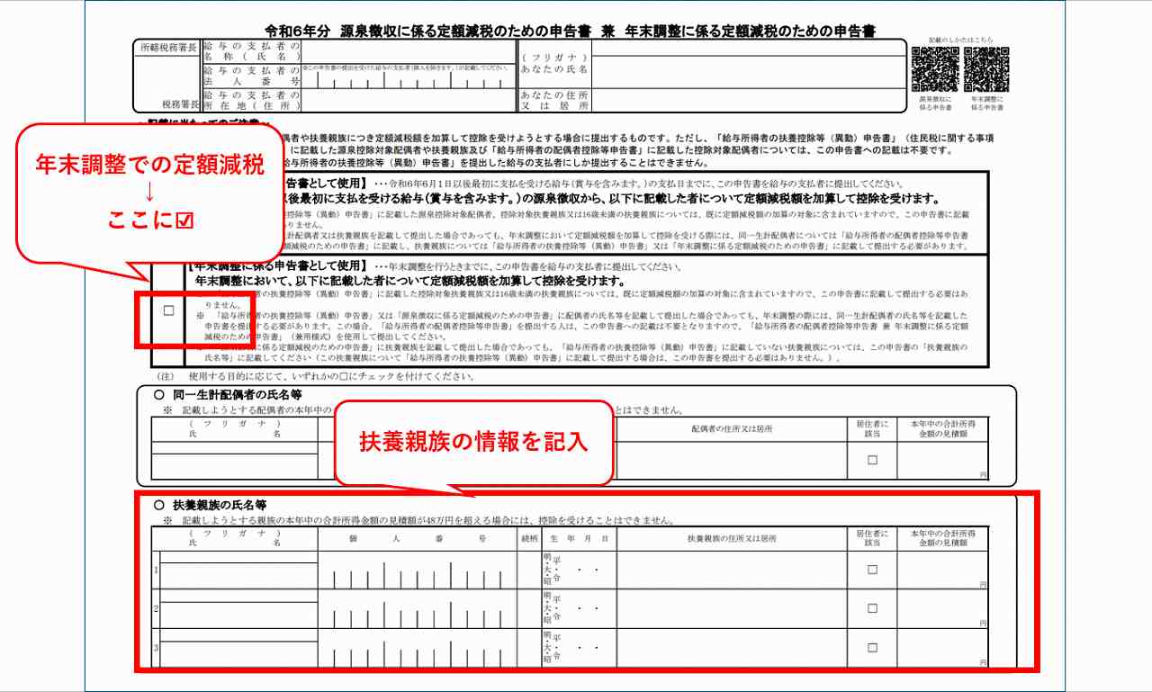 そこで「令和6年分 源泉徴収に係る定額減税のための申告書 兼 年末調整に係る定額減税のための申告書」を活用することとなります。