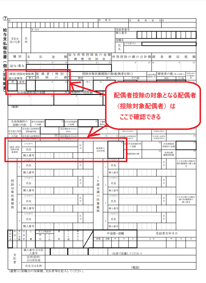 しかし、配偶者については控除対象配偶者、つまり配偶者控除の対象となる配偶者しか分かりません。配偶者控除の対象にならない同一生計配偶者は、定額減税の対象になるけれど給与支払報告書の配偶者の記載欄からは分からないのです。