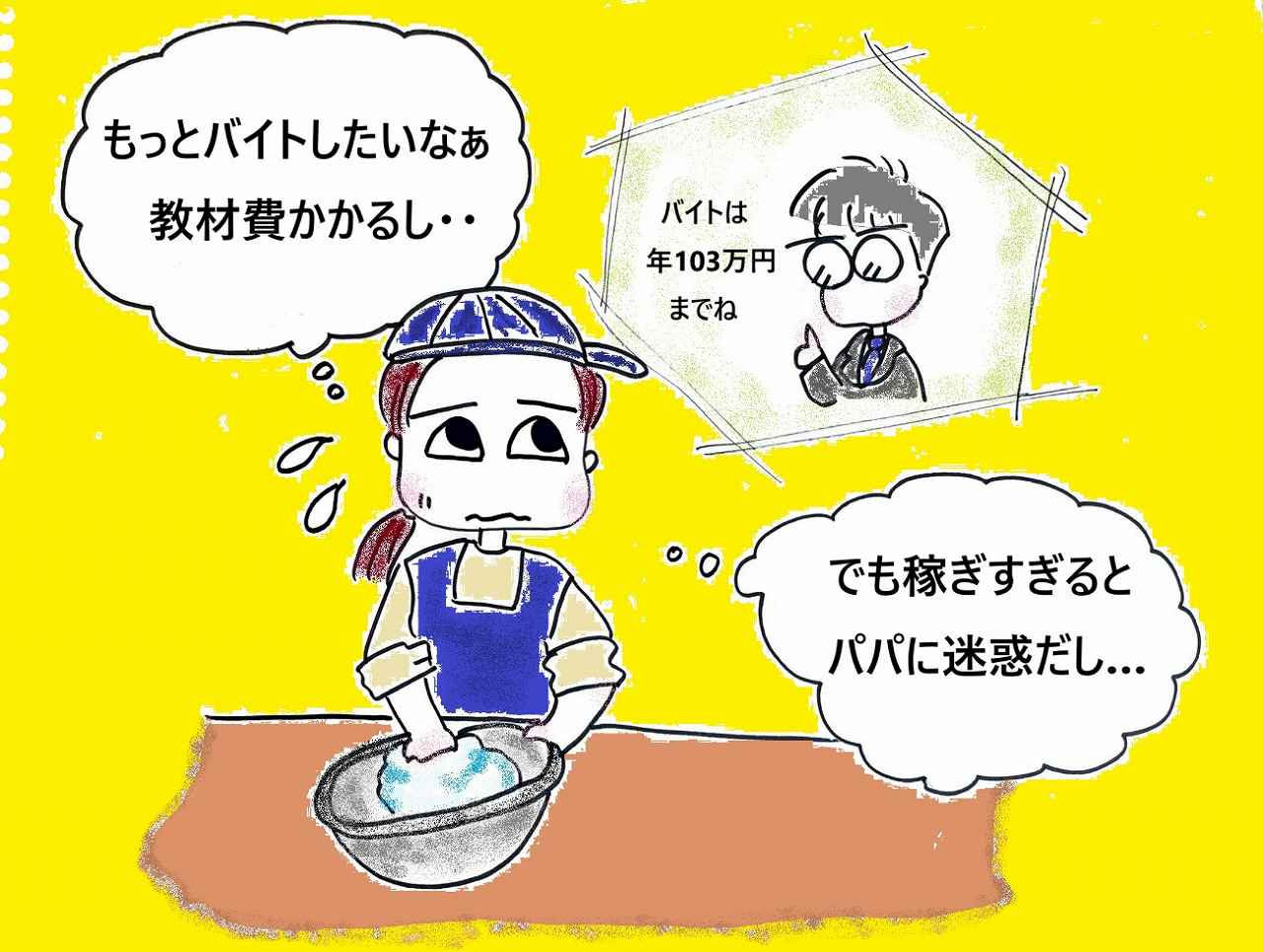 たいていの子は、大学生になるとバイトをします。しかし、たくさん稼ぐわけではありません。稼ぎすぎると、扶養している親が63万円の扶養控除を受けられなくなり、所得税・住民税が増えてしまうからです。そのため、多くの大学生の子は年末近くに就業調整をして103万円以内に抑えようとしていました。
