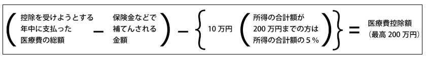 入院や手術、子どもの歯科矯正などでたくさん医療費を払った場合、医療費の一部を所得から差し引けます。所得から差し引く金額は、次の医療費控除額に適用税率を乗じた金額です。