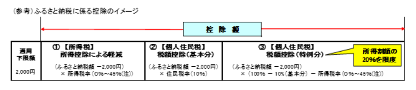 ふるさと納税をして、ワンストップ特例を使った人以外が対象です。所得から差し引く金額は、住民税での控除分を合わせて「寄附した金額-2000円」です。ただし、寄付の上限を超えていたらもっと少ない金額となります。