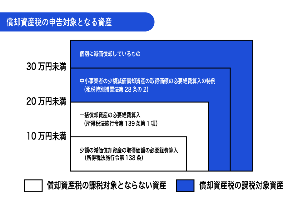| 減価償却資産(一括償却資産) | 償却資産税の対象外 |