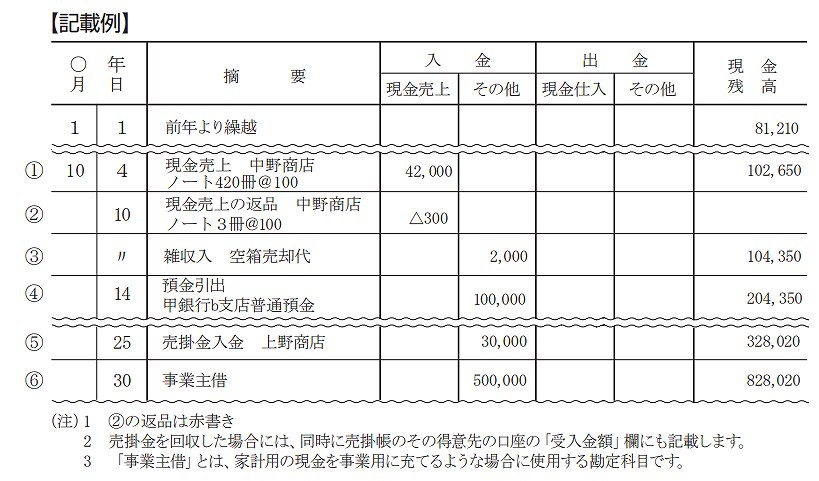 必要な帳簿 現金出納帳