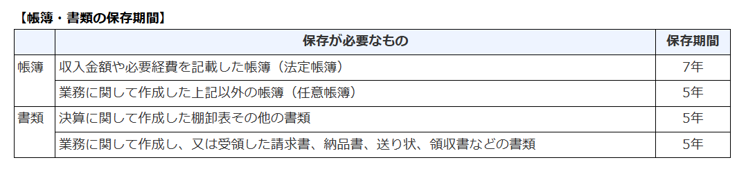 ただし一昨年の業務の収入が300万円を超えるのならば、雑所得であっても記帳義務が生じます。2020年分以降、このような取り扱いとなりました。なお、記帳すべき帳簿や保存期間は次のようになります。