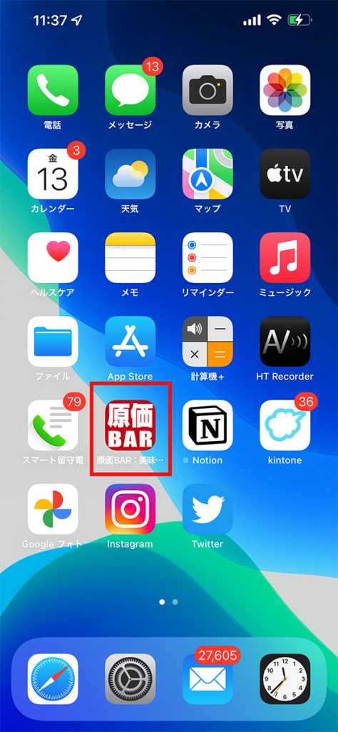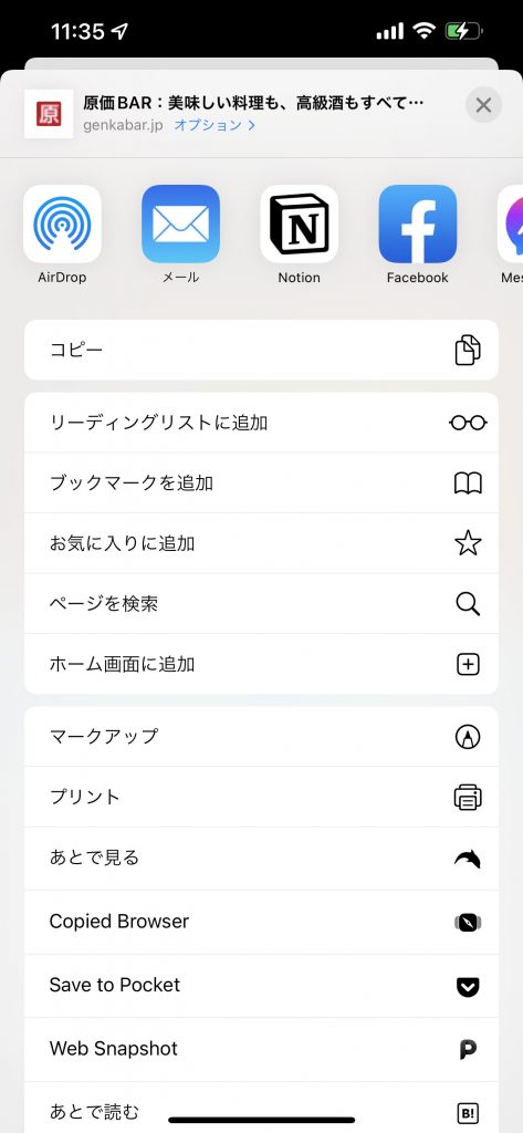 「↑」アイコンで共有メニューを出し、「ホーム画面に追加」をタップします。
