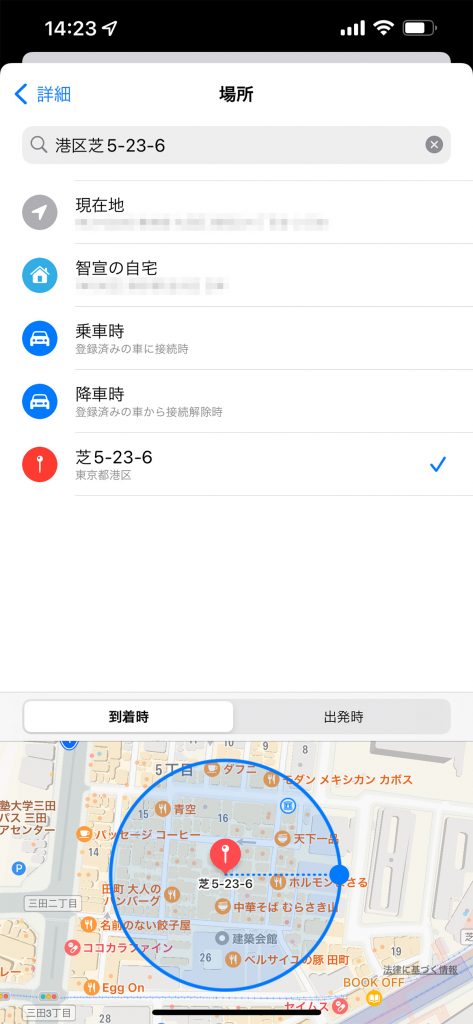ちなみに、「出発時」も設定できます。例えば、会社から帰るときに「入館証を返す」とか「傘を忘れない」などの通知を出すことができます。