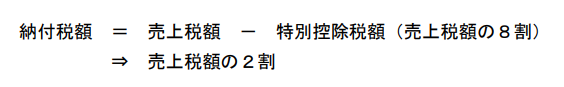2割特例を選択すると、納税額が売上分の消費税額の約2割で収まります。