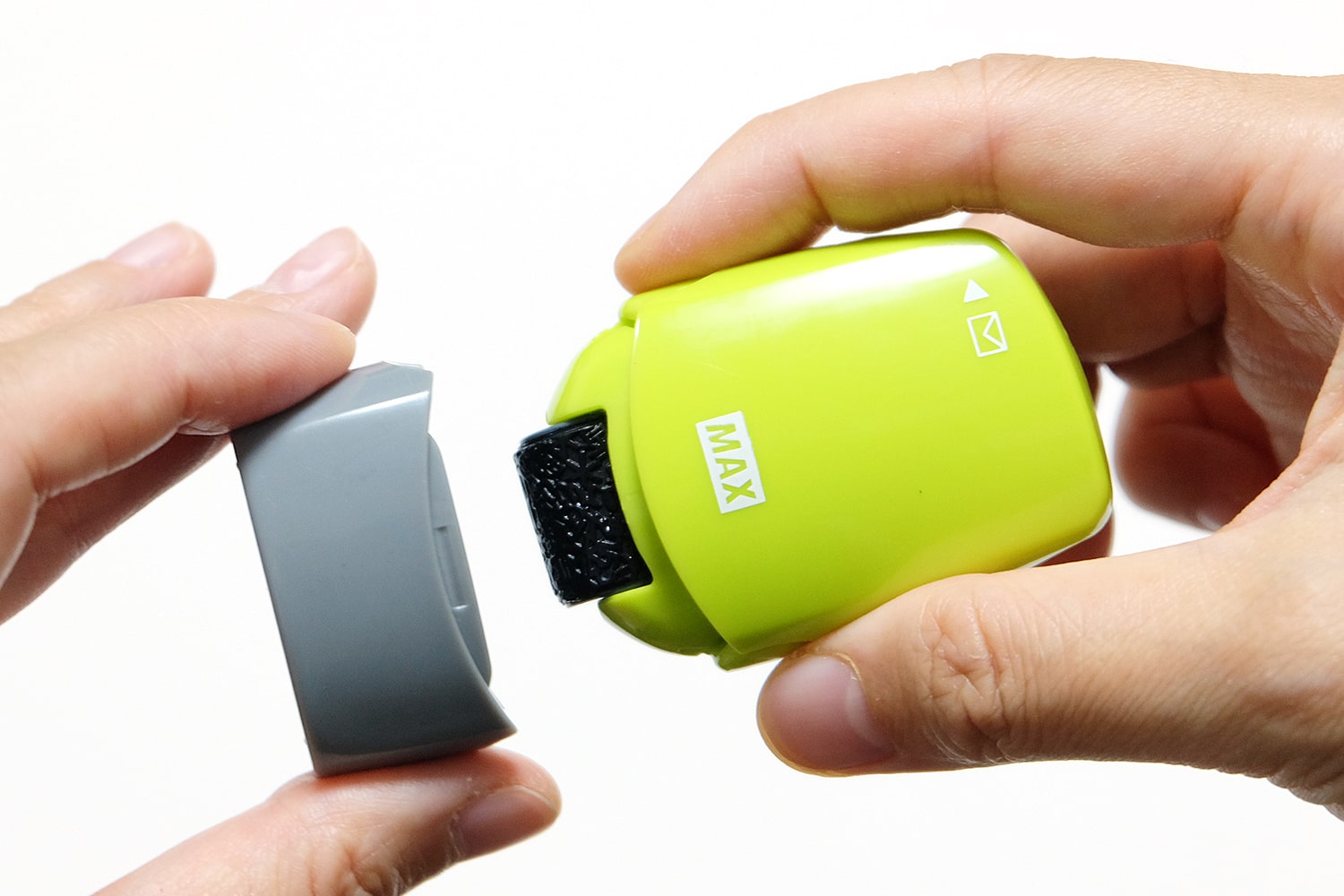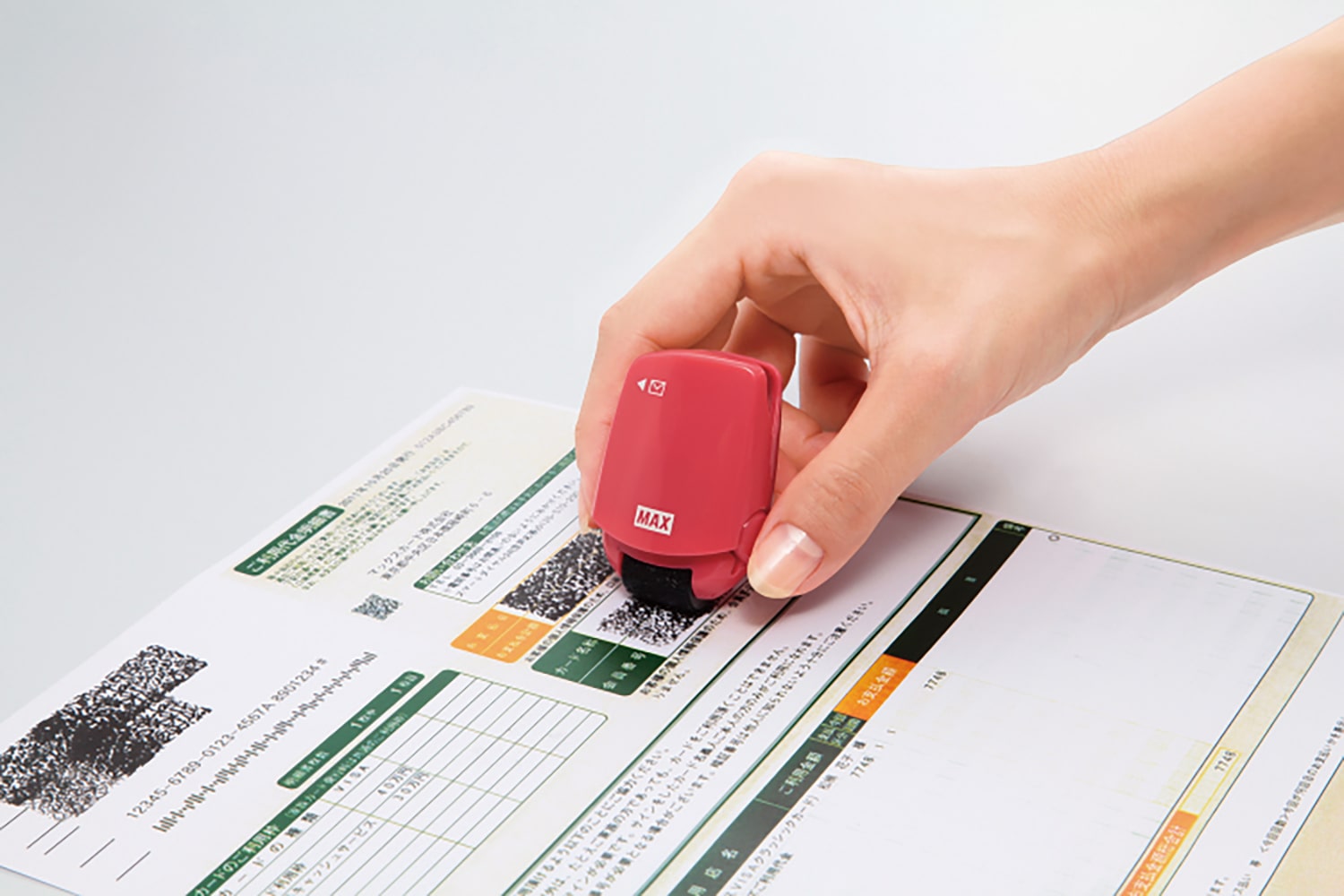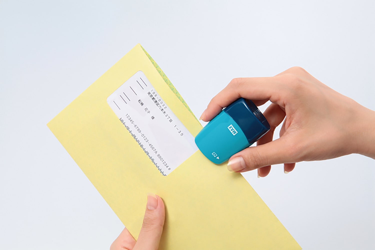 封筒を開けた後に個人情報を隠したい場合は、キャップを開けるとローラースタンプになります。書類だけでなく、例えば備品を購入したときの段ボールなどの凹凸面でも転がりながらしっかり隠すことができます。インクが濃いのが特徴で、個人情報がしっかり消えます。常に表面のローラーに新しいインクを安定補充するマックス独自のツインローラー方式が採用されているので、インク残量が少なくなっても濃さが持続。インクが無くなった時はカートリッジを交換することで繰り返し使用することができます。郵便物が多い方にもってこいのレターオープナーです。