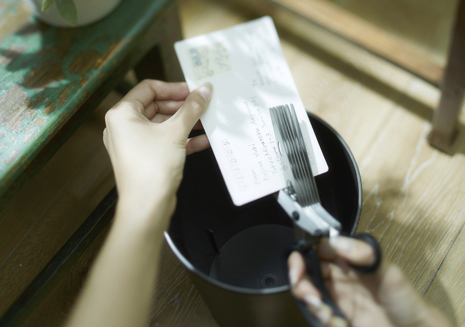 宛名などの個人情報や重要な書類の廃棄したいときに便利なのがシュレッダーです。オフィス用のシュレッダーは、一度に投入できる細断枚数が多く、スペックが高いものが多いですがその反面、値段も高く設置スペースもとるので自宅には置きにくいというデメリットがあります。そんな時はシュレッダーはさみを活用するのがおすすめです。シュレッダーはさみは、手軽に持ち運べるサイズなので、電動シュレッダーよりも収納スペースがコンパクトなのがメリットです。