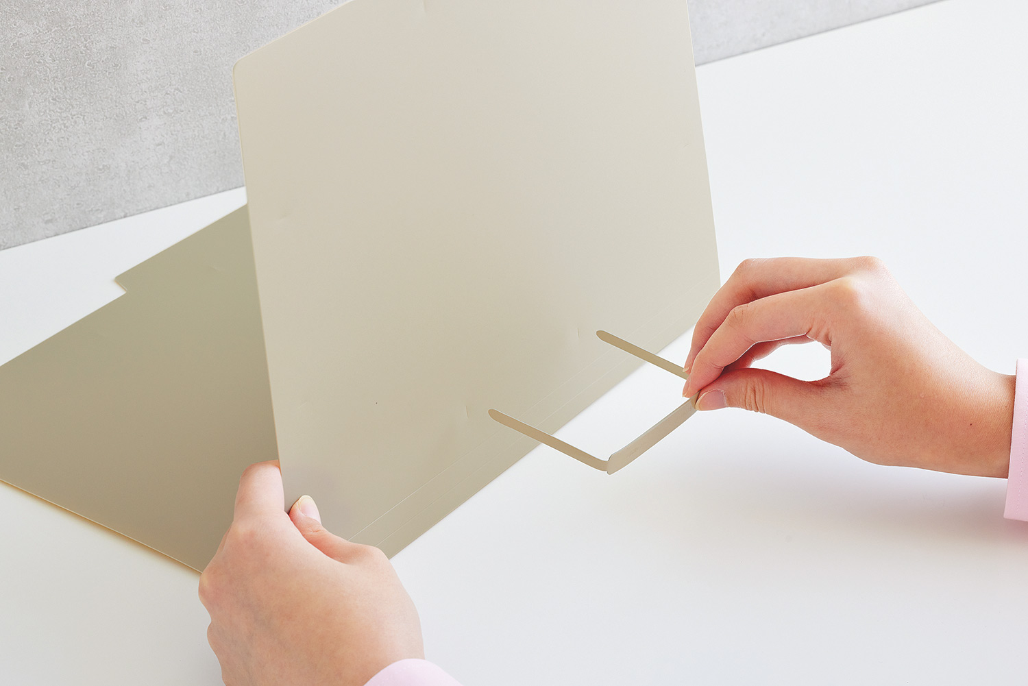 2穴パンチを使うと写真のように、2穴ファイルと同じように使えます。保存するものに合わせて使い方を変えられるのがポイント。