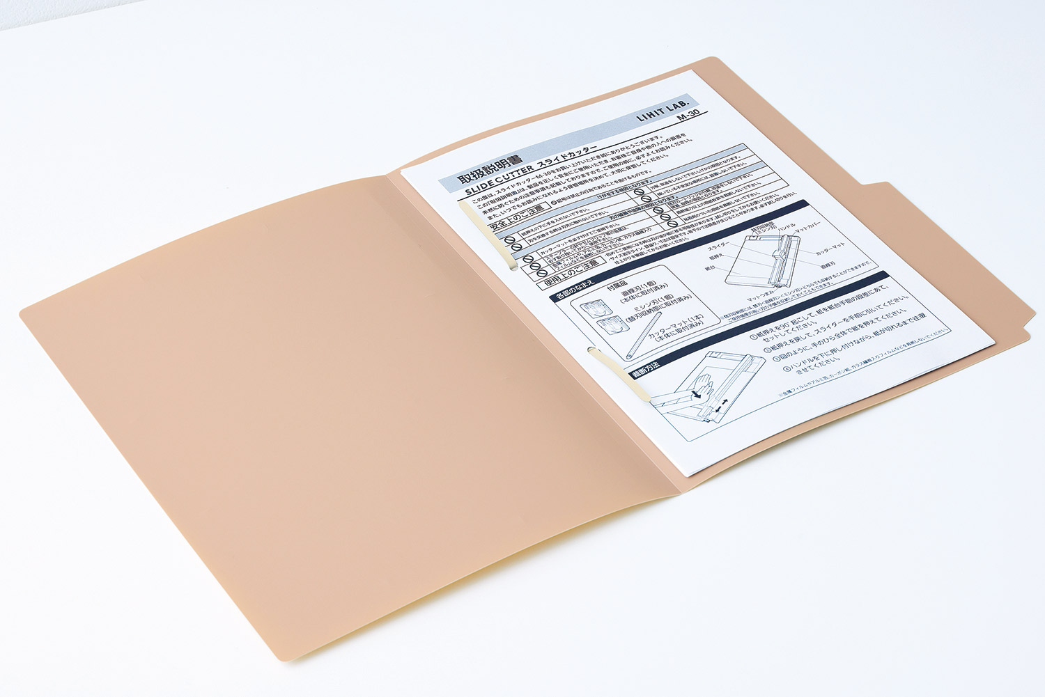 「Roomy 個別フォルダー」に書類をそのまま挟んで使えますが、本体に別売のファスナー(F-8CL-10等)を通すことができるスリットがあるので、別売のファスナーを購入すると2穴パンチで穴をあけた書類をしっかり保管できます。