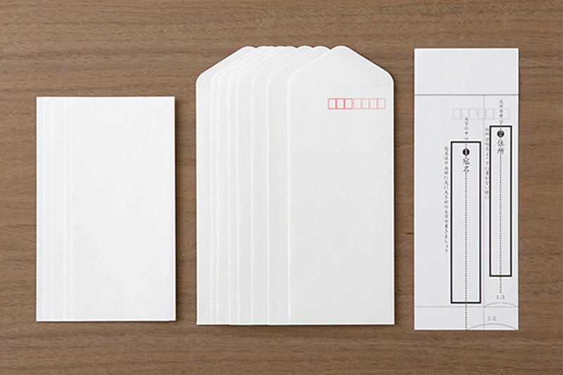 こちらも「秘密の下書き」が入っています。下敷きは住所や宛名を真っすぐきれいに書けるガイドラインになっているので封筒に差し込んで使います。「秘密の下書き」のガイドラインが見えるように封筒の紙の材質が薄くできているので、手紙が透けるのを防ぐために使用する紙が付属しています。これを使うだけで普段、書きなれない一筆箋や封筒の文字がきれいに書けるので初心者さんにおすすめの一品です。