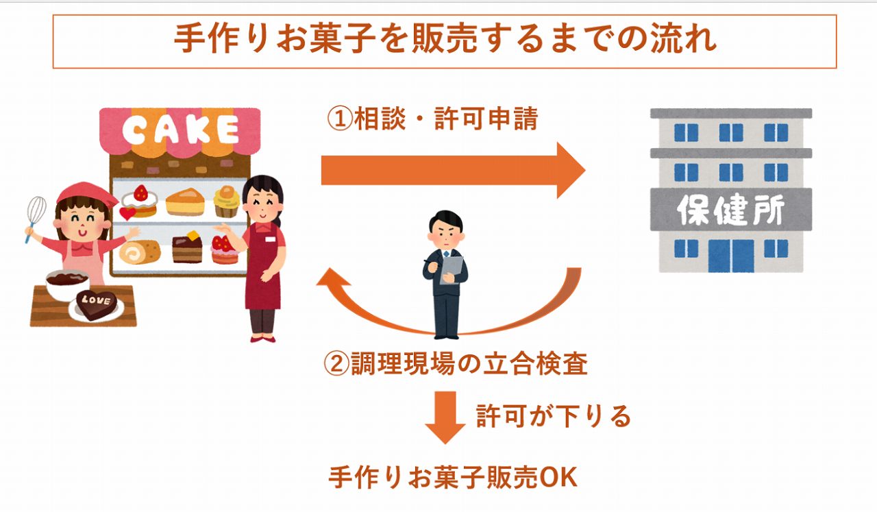 そういったことが生じないよう、手作り食品の販売は許可制度となっています。事前に売りたい本人に「手作り食品を売りたいです。こういう状況で売ります」といった申請をさせ、管轄の保健所が「こういう条件なら衛生上も問題がない」と認めたら、はじめて手作りのお菓子やパンを販売してよいこととなっているのです。