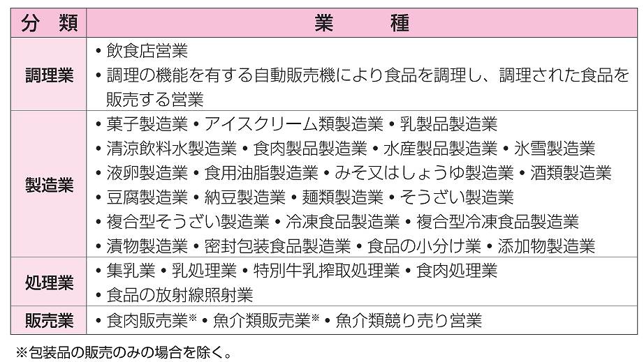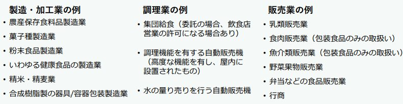 食品販売にあたり、営業許可が必要なものは様々あります。食品衛生法では、次のように定めています。