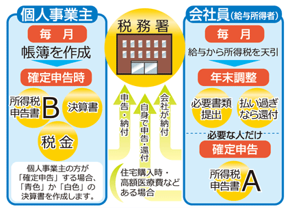 会社員の場合は勤め先で年末調整がなされているため、勤務先の給与以外に収入がない場合には確定申告の必要はありません。ただし一定以上の副収入がある人や、高額の医療費を支払った場合(*1)には、確定申告をする必要が出てきます。青色申告とは「不動産所得」「営業所得」「農業所得」などがある方向けです。