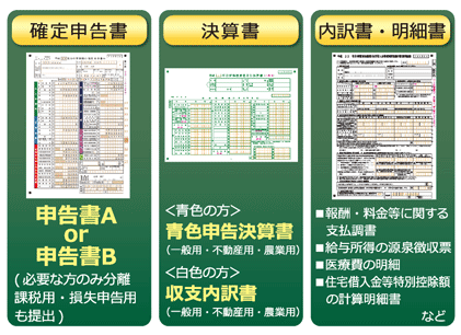 青色申告ソフトで作成できる決算書のほか、所得税額を計算するための確定申告書やそれに添付する明細書が必要です。国税庁のホームページでは、確定申告に必要な書類の説明が分かりやすく記載されていますので、併せて『初めて確定申告される方』もご確認ください。