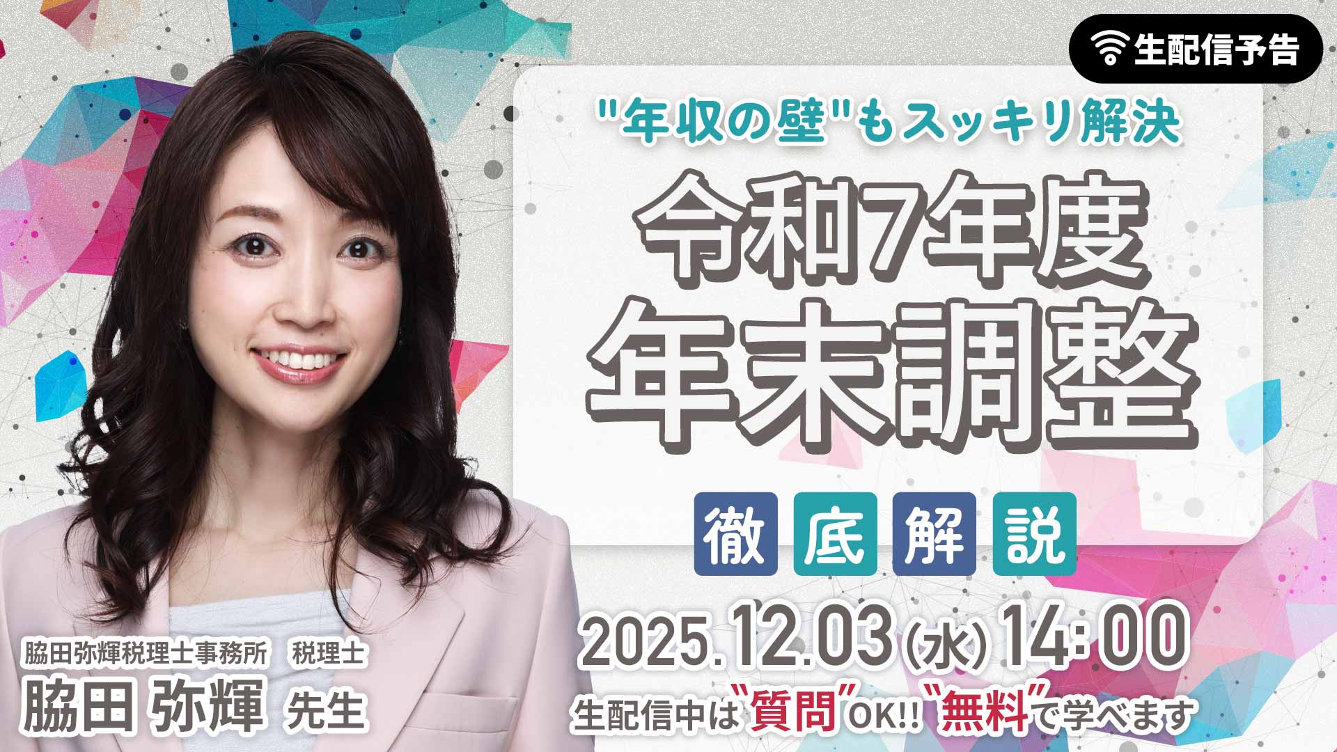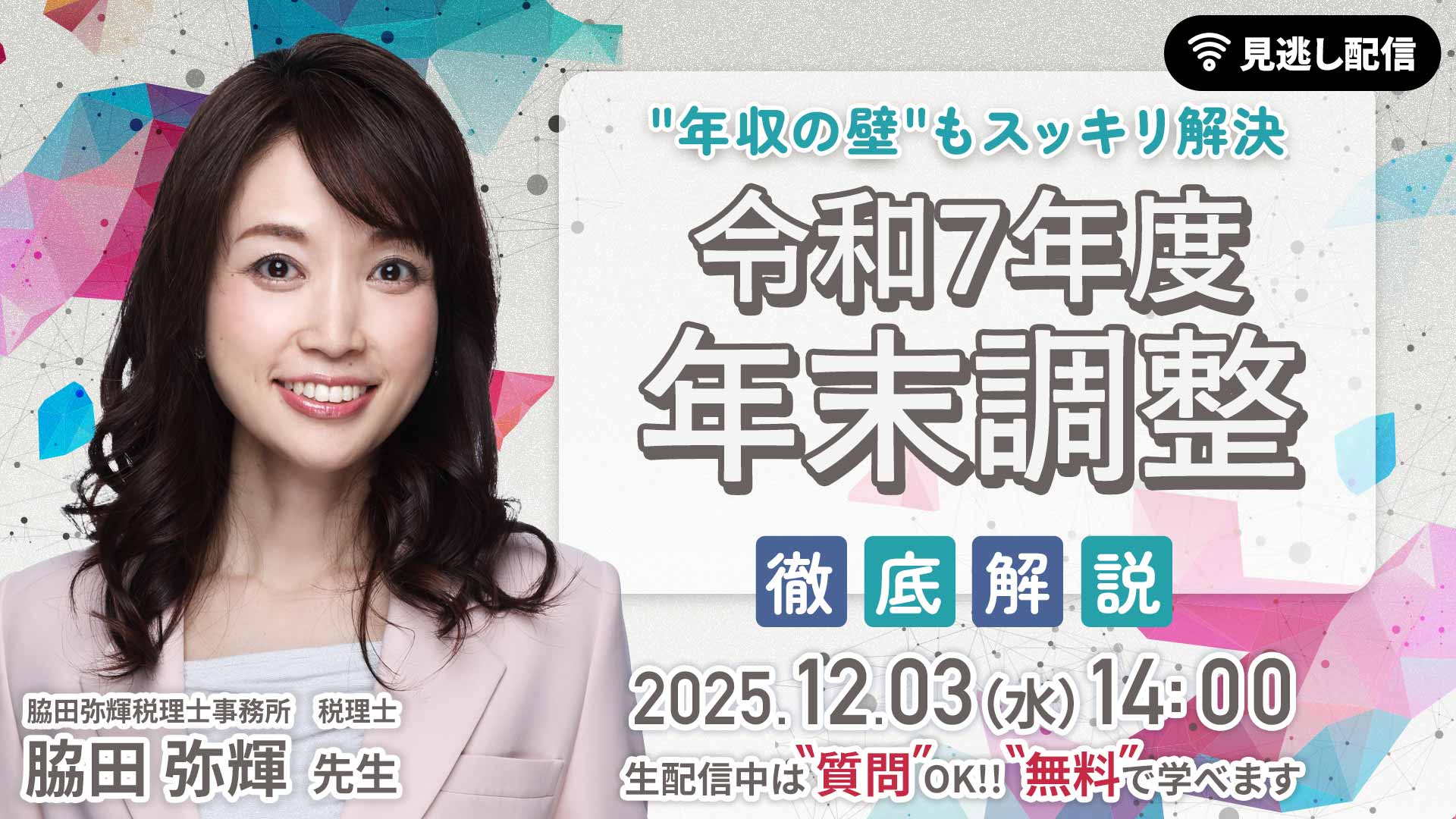 2025/12/03 年収の壁もスッキリ解決「令和7年度年末調整」徹底解説 講師:脇田 弥輝(みき)先生(脇田弥輝税理士事務所 税理士)