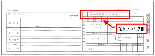 ・個人事業者用 消費税申告書 第1表の右上に「(個人の方)振替納税希望」欄が追加されました。