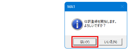 「VM1データ取込」の画面上部[仕訳登録]ボタンをクリックすると、下のメッセージが表示されますので、[はい]をクリックします。