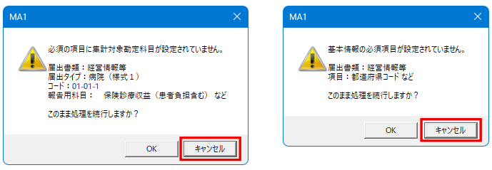 必要に応じて確認メッセージは[キャンセル]ボタンをクリックし、該当箇所の見直しを行ってください。