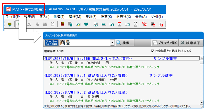 複製起動したMA1にて「スーパーらくらく検索」をご利用いただけるようになりました。
