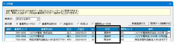 3.取得中の会計データがある場合は、「データ格納」や「同期解除」を行います。
