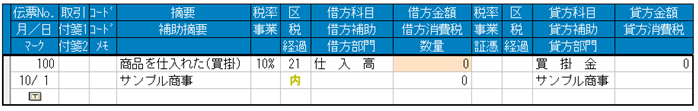 最後に借方金額と貸方金額を入力しますと、仕訳が完成します。