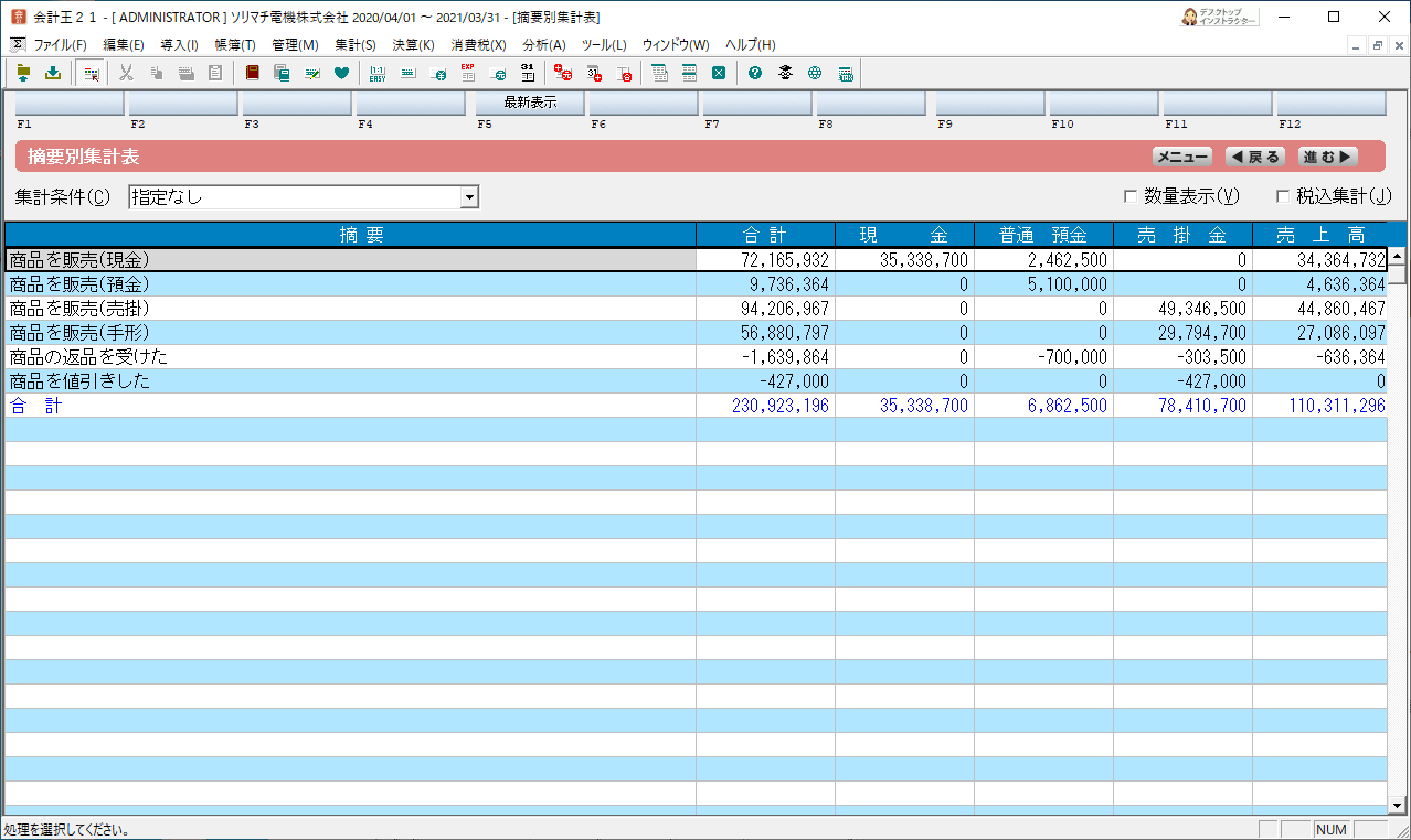 摘要損益集計表 仕訳の損益を摘要別に集計