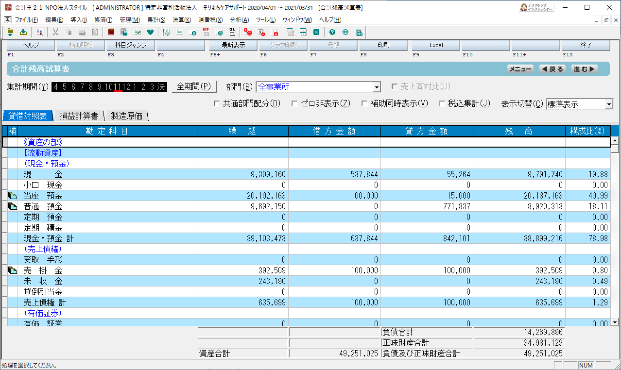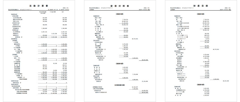 会計王NPO法人スタイルは、特定非営利活動促進法に係る諸手続きの手引きに準拠しています。決算書を事業ごとに作成することも可能、全財務諸表について補助科目残高の印刷指定もできます。