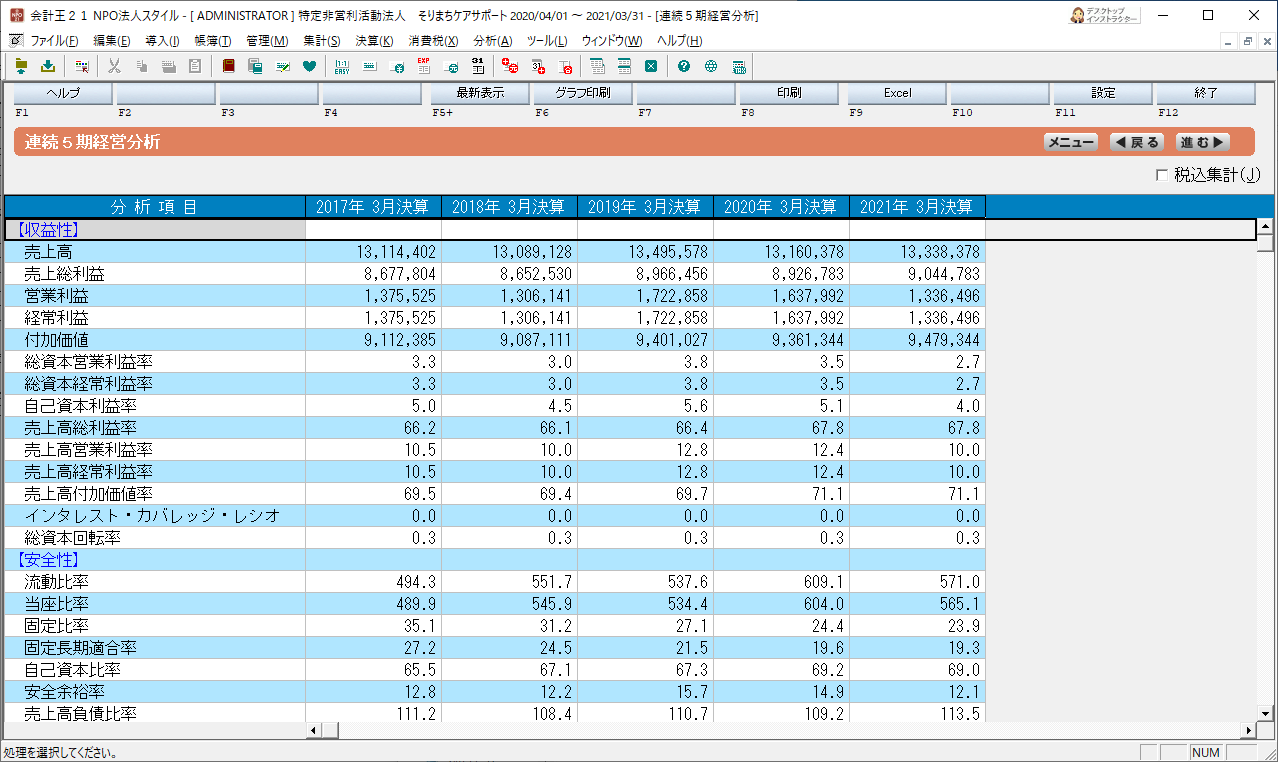連続5期経営分析 連続5期にわたる経営分析で問題の明確化
