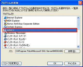 ここで説明するWindows ファイアウォールの設定をする前に、データベースエンジンとしてインストールされているMicrosoft SQL Server 2000 Desktop Engine(以降、MSDE2000)、またはSQL Server 2000にService Pack 3以降が適用されていることを確認してから行ってください。