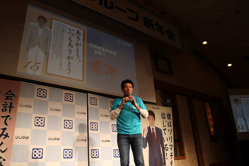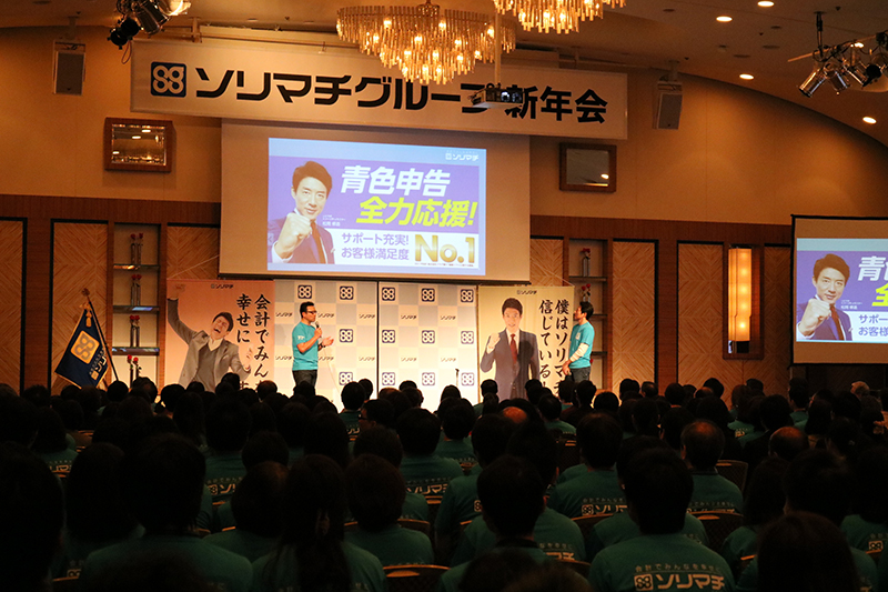 最後に、グループの顧問に事業計画発表会の総括をしてもらい、改めて今回の発表会を機にソリマチグループの理念「会計でみんなを幸せにする」を大切に胸に刻み、新たな付加価値サービスの提供に向け挑戦を続けていくことを誓いました。