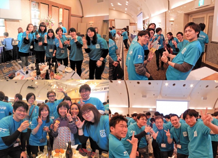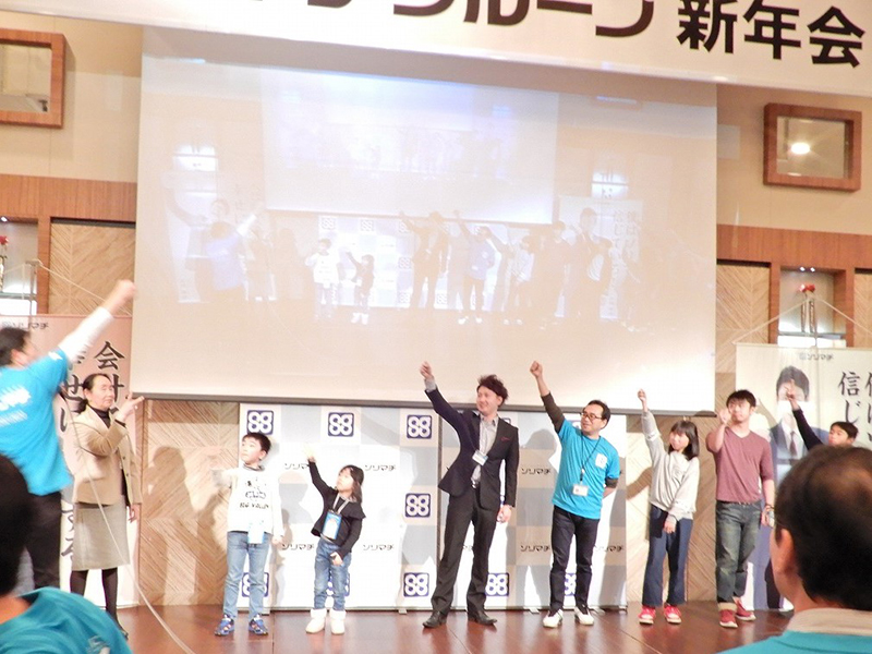 夕方からは総勢400名以上で新年会を開催。家族を招待しグループのイベントをするのは今回が初めて。配偶者やお子さんに限らず、両親、兄弟、祖父母など幅広い家族に対象に、120名ほど参加いただきました。会場は超満員です。