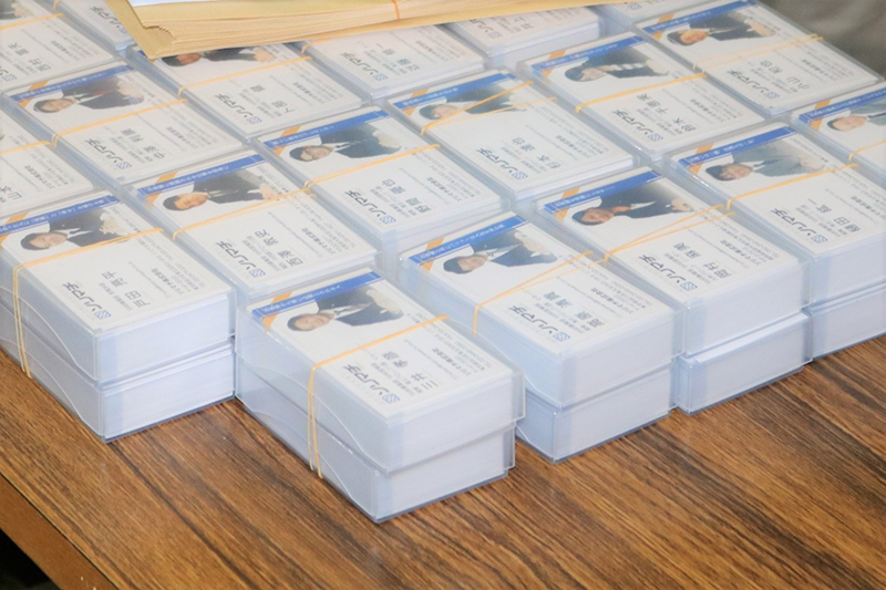 また、名刺もグループでデザインを統一。当日、幹部から各社員へ手渡しされました。「名刺は自分自身を表す」とも言われますが、各自が大切にしているMySpiritと、笑顔で輝いている写真を掲載し、「個」を引き立たせる最強の組織、最高のチームを目指していきます!